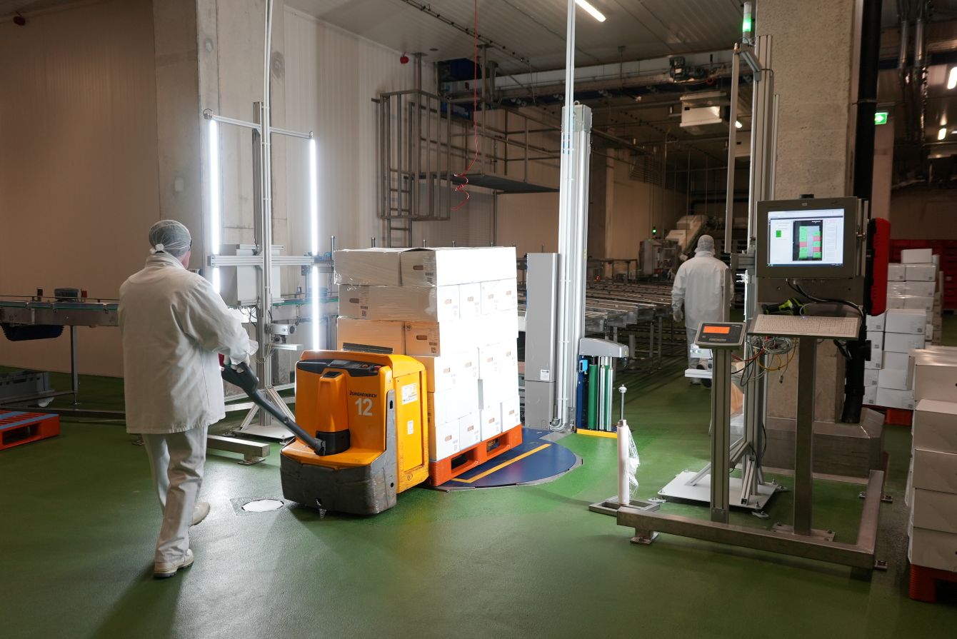 Die Machine Vision-Lösung erfasst und dekodiert in wenigen Sekunden die Barcodes von bis zu 128 Kartons und prüft deren Artikel- und Chargenreinheit. Damit steigert das Unternehmen die Effizienz und erreicht sein Null-Fehler-Ziel. Allein in Garrel werden pro Monat bis zu 8.400 Paletten mit tiefgekühlter Ware abgerufen Goldschmaus setzt auf strukturierte und manipulationssichere Prozesse für die artikel- und chargenreinen Paletten mit bis zu 128 Kartons. Die Barcodes aller Kartons müssen gescannt und mit den im ERP-System hinterlegten Daten abgeglichen werden.